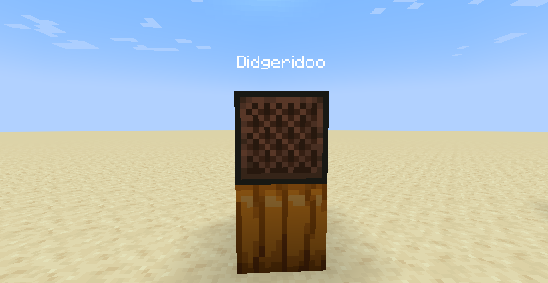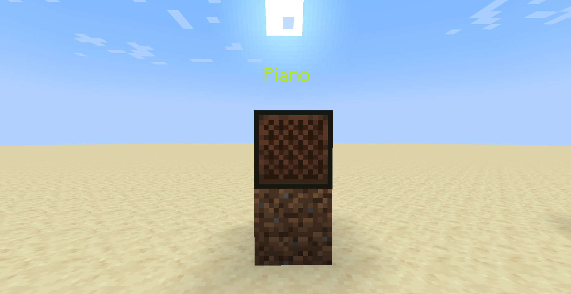 Um bloco musical é um bloco que reproduz sons quando energizado com redstone. Ao apertar nesse bloco, o tom aumenta, são 24 notas musicais e 16 instrumentos. Ao colocar um bloco em baixo desse bloco, o instrumento tocado muda, também ao colocar uma cabeça de mob em cima desse bloco, sairá som desse mob. Veja abaixo os sons de cada instrumento: